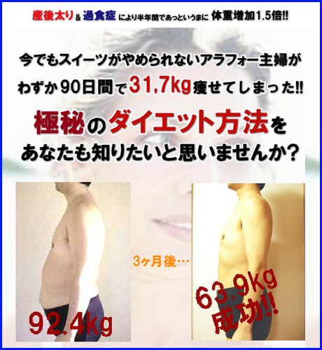 ● 90日間で31,7kgの減量に成功した驚異のダイエット法 ☆の実践談を